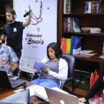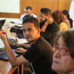 Escrever roteiro, escolher planos, enquadramentos e movimentos de câmera, definir a direção de arte, organizar as tarefas de produção. A maratona de aulas sobre como se faz um filme documentário e uma ficção exige trabalho, criatividade e colaboração entre autores e professores da sexta edição do Revelando os Brasis. Os moradores de pequenas cidades com até 20 mil habitantes tiveram aulas de Montagem com Márcia Medeiros; Produção com Alex Guerreiro e Beth Formaggini; e Direitos Autorais com a advogada do Canal Futura, Juliana Carvalho. E, no intervalo da aula, a turma festejou o aniversário da professora de produção para documentário! Parabéns, Beth!