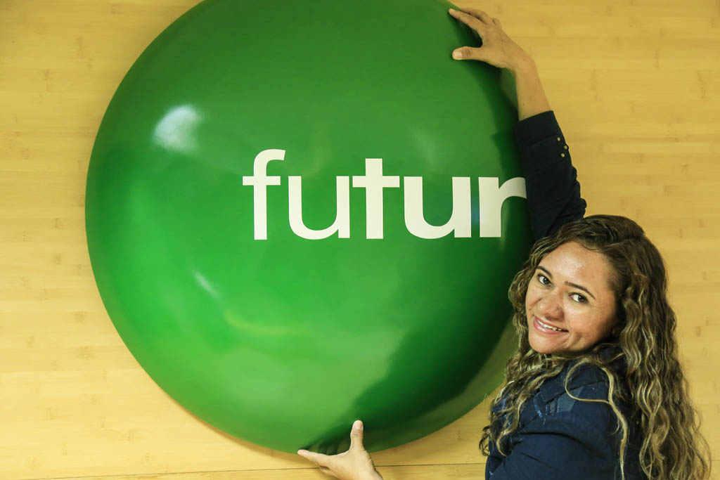 A professora Benilda Sousa, de Aiuaba (Ceará), a professora Renata Loureiro, de Santarém Novo (Pará), a jornalista Mikaely Barbosa, de Aparecida (Paraíba), e a pedreira Carlúcia Melo, de Arraias (Tocantins), selecionadas pela quinta edição do Revelando os Brasis, acabam de se encontrar no Canal Futura, no Rio de Janeiro.